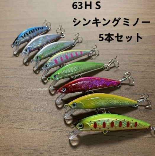 - セール!5色セット 63hs 大型トラウト用 D系シンキング ミノー ニジマス コンタクト