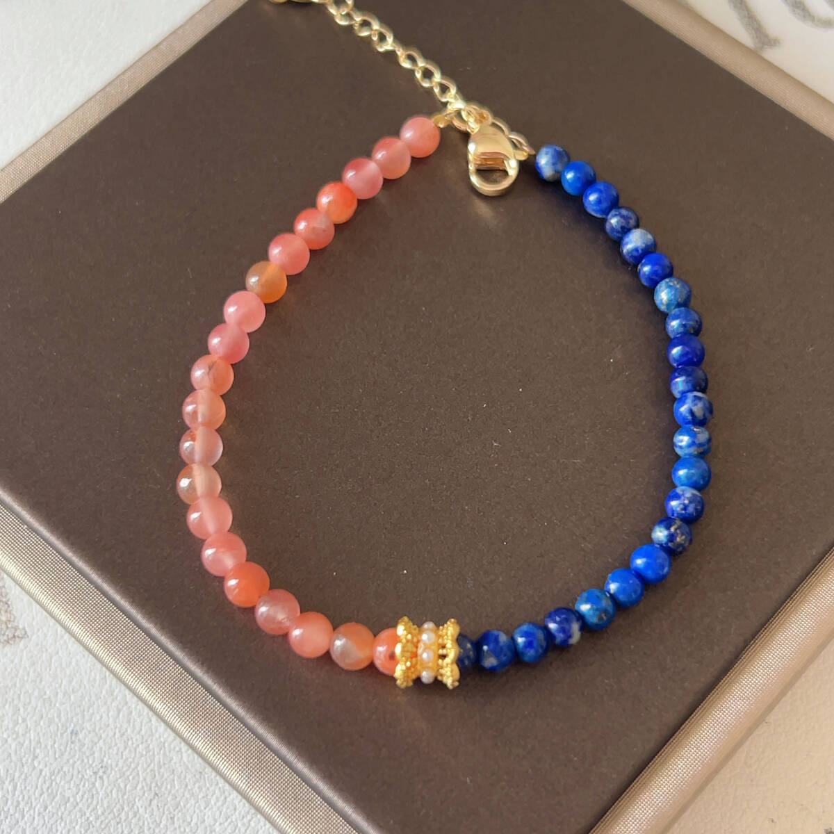 > ◇南紅瑪瑙+ラピスラズリ◇ブレスレット◇パワーストーン◇天然石◇巾着袋付き◇プレゼントにも 040B9156