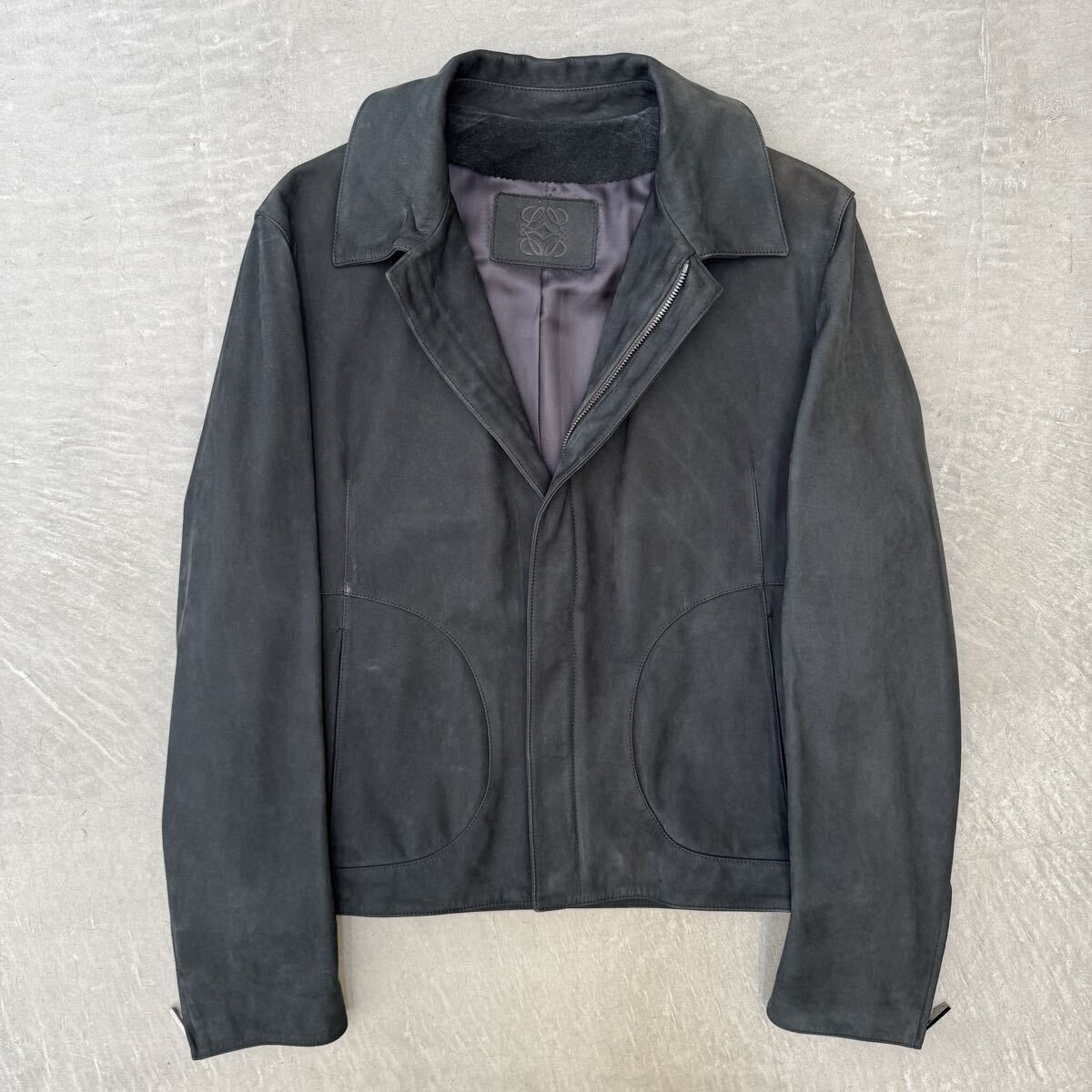 > 【美品】ロエベ◆スウェード ジャケット フェードブラック 52 LOEWE スエード レザージャケット スウェードジャケット ジャケット ブルゾン