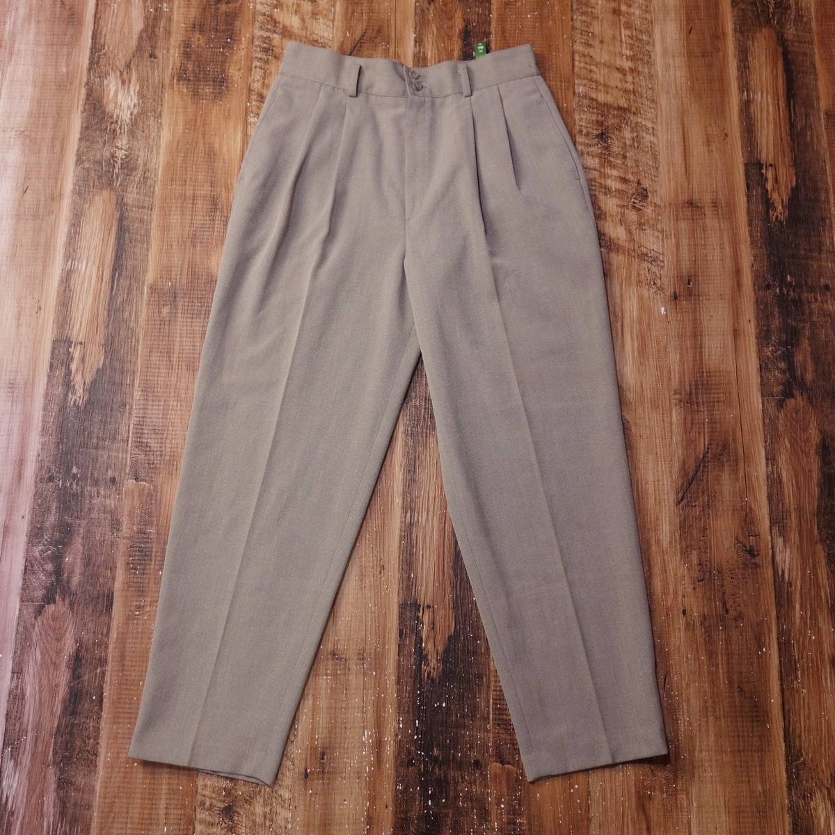 - 美品 テーパードスラックス レディース タック きれいめ オフィス 76 グレージュ QI6