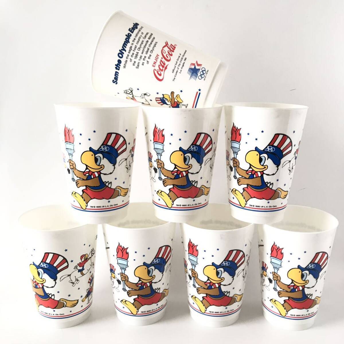 - 当時物1984年コカコーラCOCA-COLAロサンゼルスオリンピック☆プラスチックコップ昭和レトロヴィンテージイーグルサム コップ 食器 カップ