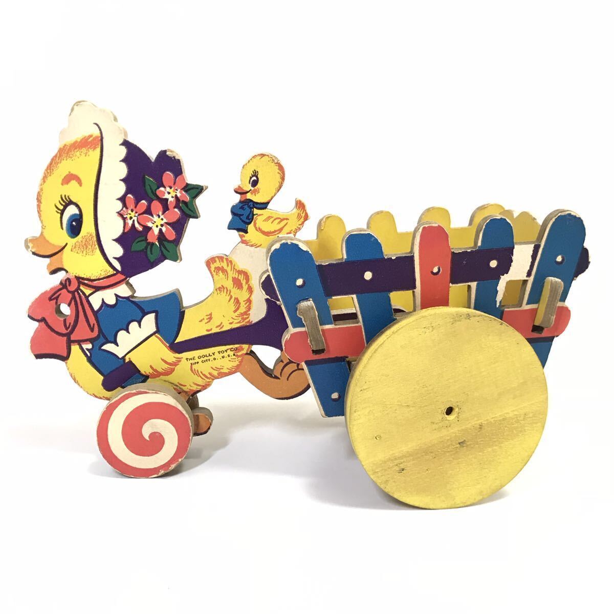 - 1950年代DOLLY TOY COアヒルちゃんキャンディーコンテナバスケットお菓子入れ玩具ヴィンテージアンティークレトロカントリー雑貨