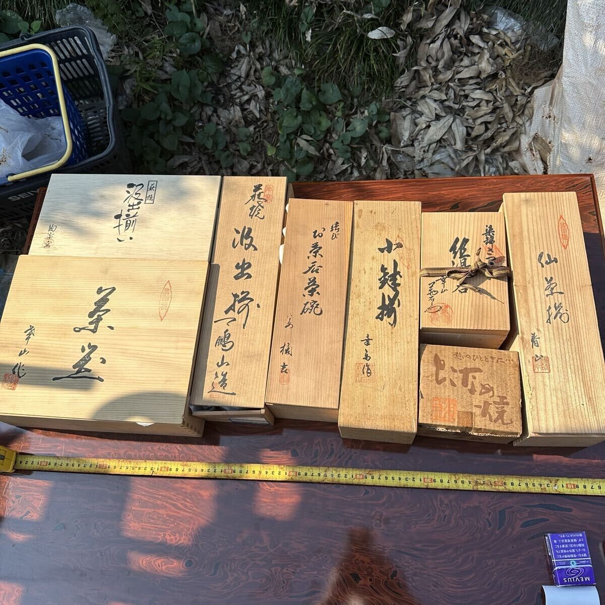 - 柏MT01 木箱 桐箱 萩焼 茶器 和食器 陶器 骨董 アンティーク 和風 日本 皿 茶碗 焼き物