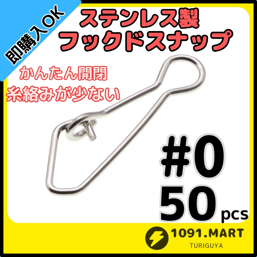 > 【送料150円】ステンレス製 フックドスナップ #0 50個セット インタースナップ ルアー釣り エギング かんたん開閉 すり抜け抜群!