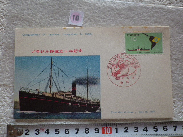 - FDC ブラジル移住50年 1958年 1貼1消 神戸 解説書無 郵便文化●10●同梱大歓迎