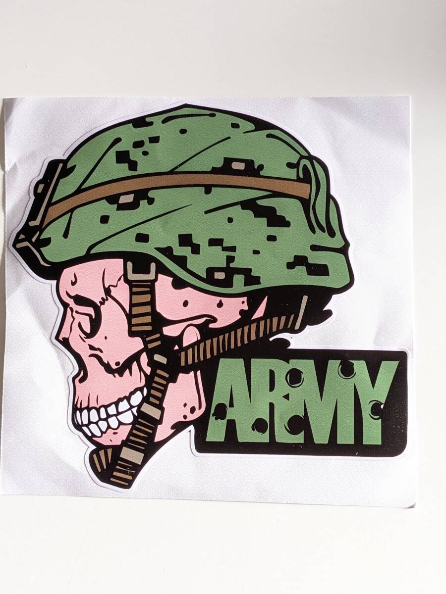 - 中サイズ♪160mmx155mmアーミー ヘルメット アート スカル 骸骨ステッカー ハーレー アメリカ USA ジープ ミリタリー 軍