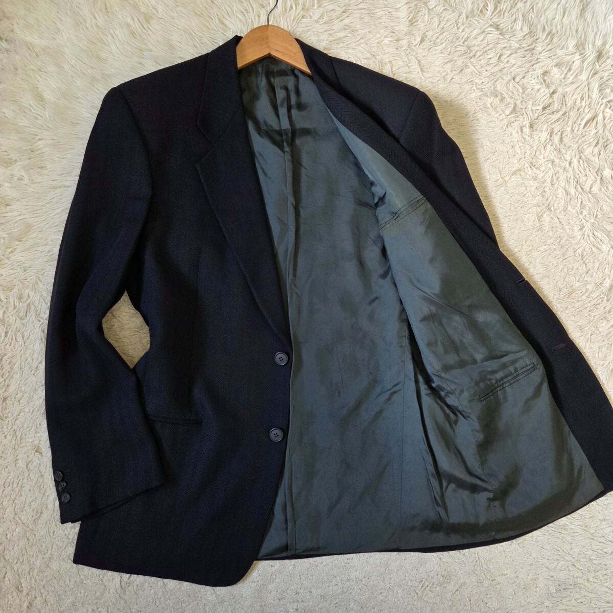 > 美品 ジョルジオ アルマーニ【希少サイズ50 XL ウール ヘリンボーン イタリア製】GIORGIO ARMANI テーラードジャケット ダークネイビー