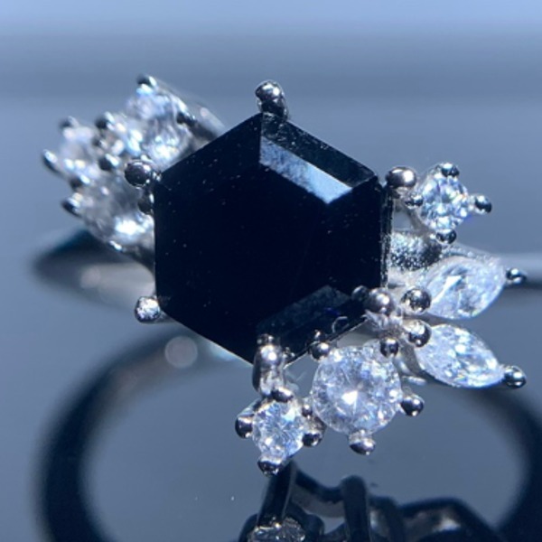 - 女性用ブラック スピネルリング 鑑別付き 天然石 ナチュラル アクセサリー カラーストーン 宝石 Yu_8204