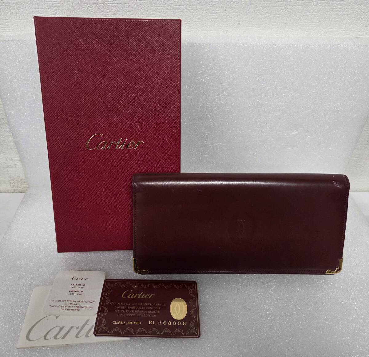 > Cartier カルティエ 長財布 財布 スリム 小銭入れ 本革ゴールド金具 ボルドー 箱あり KL368808 0912-015(6)