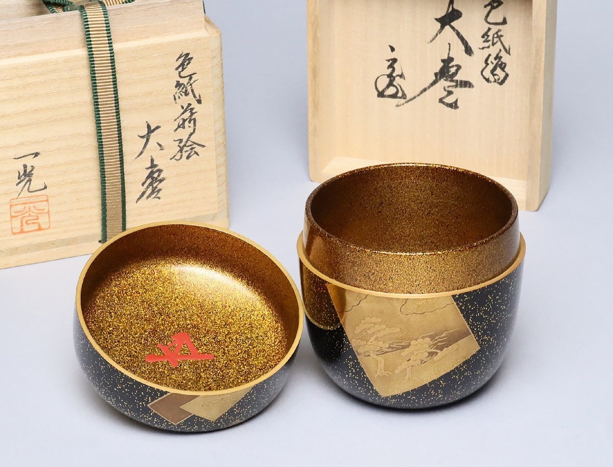 ・清瀬一光 色紙蒔絵 大棗 鵬雲斎書付 共箱 /茶道具 漆美術 蒔絵美術 螺鈿細工 梨地