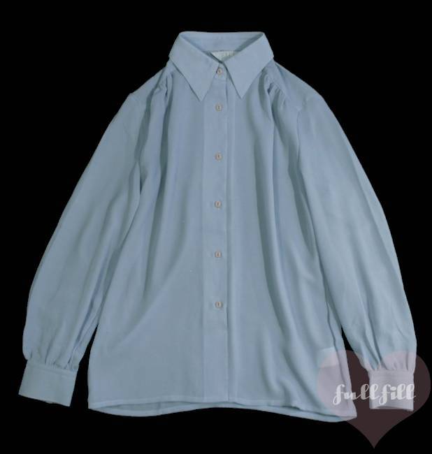 > 古着 ブラウス 昭和 レトロ ブルーグレー ビンテージ ヴィンテージ vintage 無地 シンプル 透け感 くすみ 長袖 レディース古着 used 青