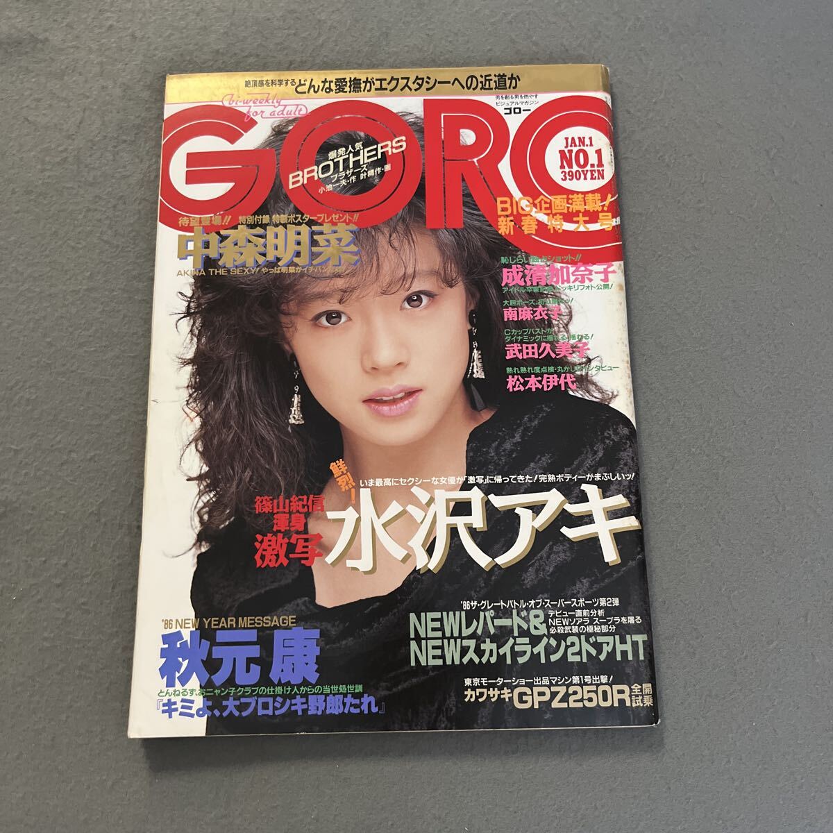 > GORO●昭和61年1月1日発行●NO.1●ゴロー●男性誌●芸能人●アイドル●スポーツ●車●水沢アキ●松本伊代●秋元康●カワサキGPZ250R