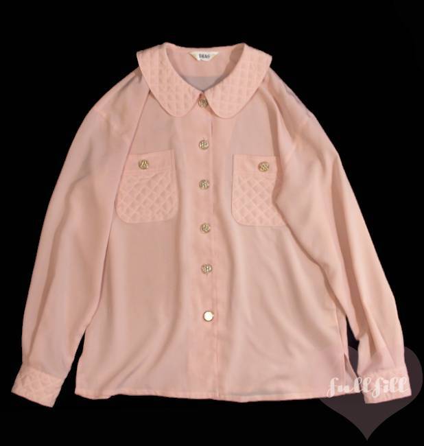 - 古着 ブラウス 昭和 レトロ ピンク ビンテージ ヴィンテージ vintage キルティング マトラッセ フォーマル 長袖 レディース古着 used