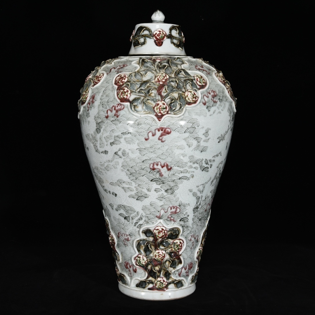 > 「元代風 古陶磁器 染付 梅瓶 青花 釉裡紅 捏花 龍紋 留白 花瓶 賞瓶 陶芸 瓷器」時代物 骨董 旧家蔵出し 唐物 中国古玩 華夏品 古美術品