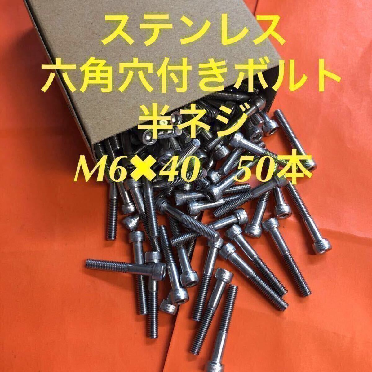 - ◆送料込◆ステンレス 六角穴付きボルト 半ネジ M6×40 50本 ステンキャップボルト 半ネジ