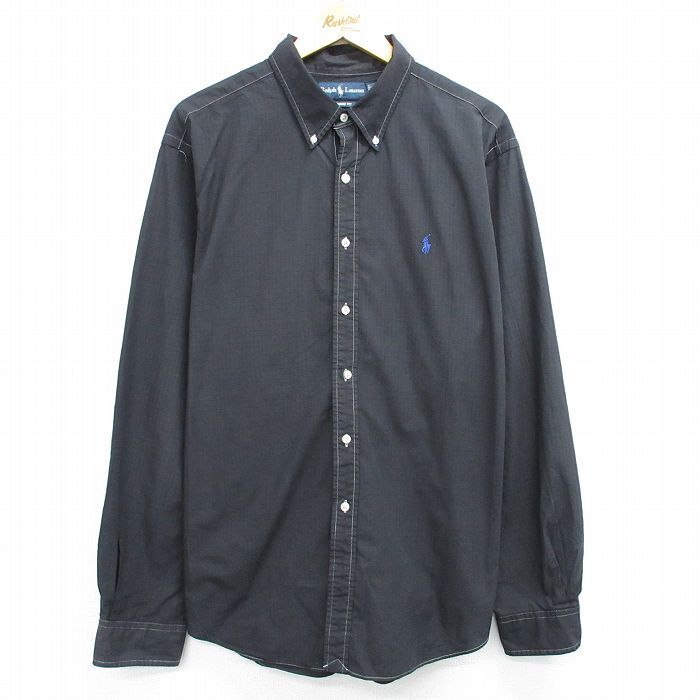 > XL/古着 長袖 ブランド シャツ メンズ 90s ワンポイントロゴ 大きいサイズ コットン ボタンダウン 黒他 ブラック チェック 2