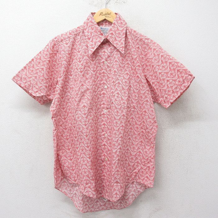 - L/古着 半袖 シャツ メンズ 70s 総柄 赤 レッド 24jun11 中古 トップス