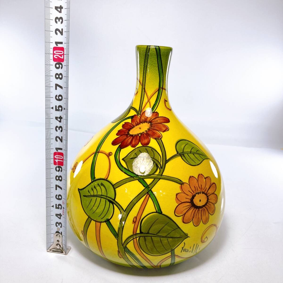 - |2583|CERAMICHE PAOLI チェラミケ・パオリ 花瓶 黄色 花柄
