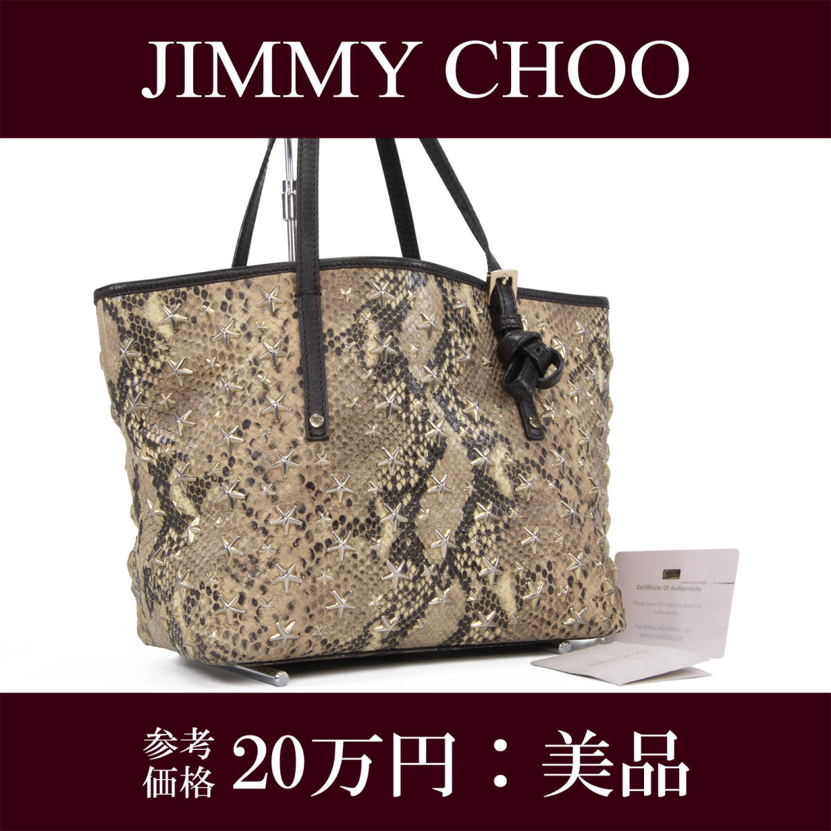 - 本物 送料無料 ジミーチュウ ハンドバッグ トートバッグ レディース パイソン型押 サシャ 茶色 小さめ 星 スタースタッズ ロゴ バック I254