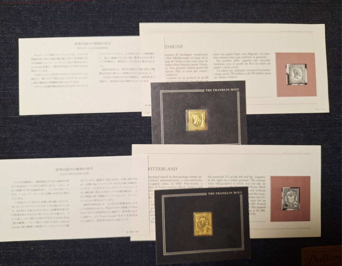 - 送料無料!フランクリンミント社 未開封 世界の国々最初の切手シリーズ 銀製純金メッキ サルデーニャ×スイス 解説カード付き!