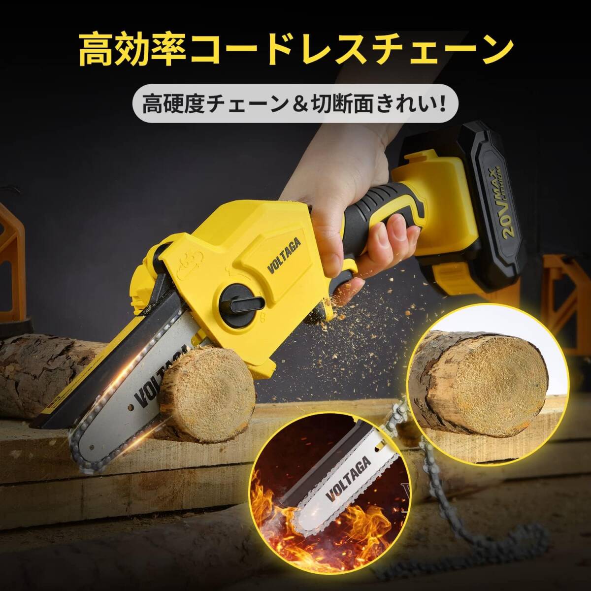 - コンパクト 電動チェーンソー・充電式・最大切削直径110mm・4m/s速度・軽量