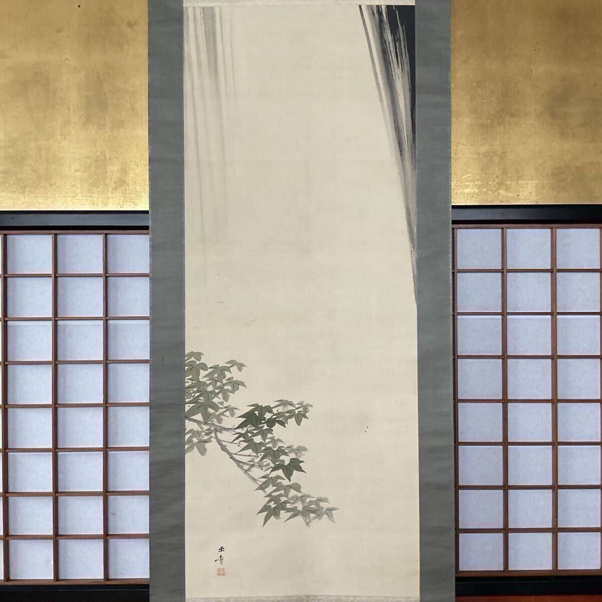 - 【真作】蔵出し【川端玉章『青楓瀑布図』絹本 肉筆 日本画 中島来章師事 京都府出身 川端玉雪極箱 共箱】