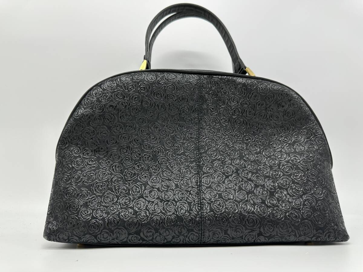- ●91259 ハンドバッグ ブラック 薔薇柄 印傳屋 ダブルハンドル