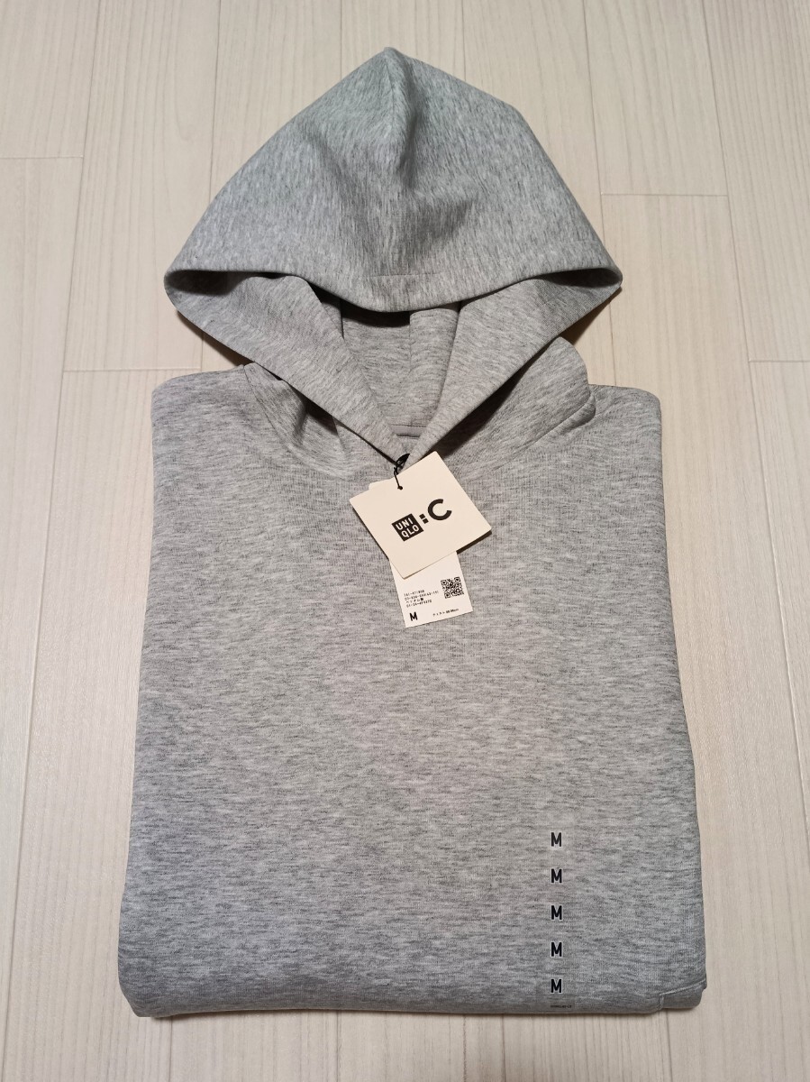 > 【新品タグ付】UNIQLO : C ダブルフェイスプルパーカ Mサイズ スウェット グレー プルオーバー パーカー スウェット ユニクロ