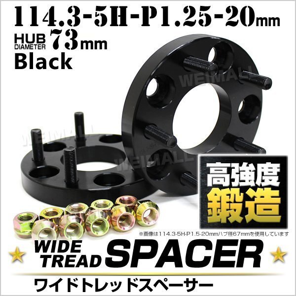 > Durax正規品 ワイドトレッドスペーサー 20mm 114.3-5H-P1.25-H73ナット付 黒 ホイール スペーサー ワイトレ ワイドスペーサー 2枚
