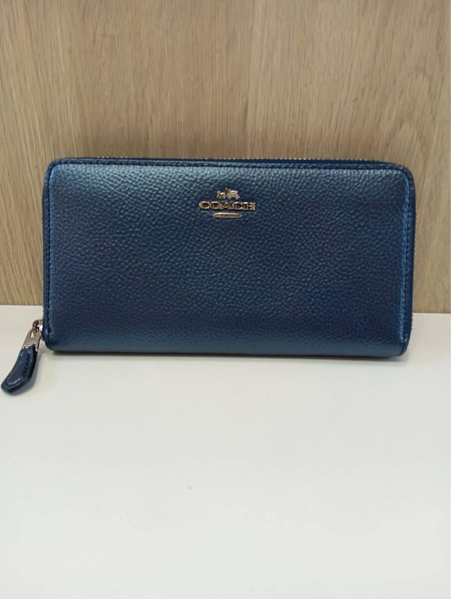 - 【中古品】COACHコーチ ラウンドジップ 長財布 ダークネイビー レザー ファッション小物 財布 現状品