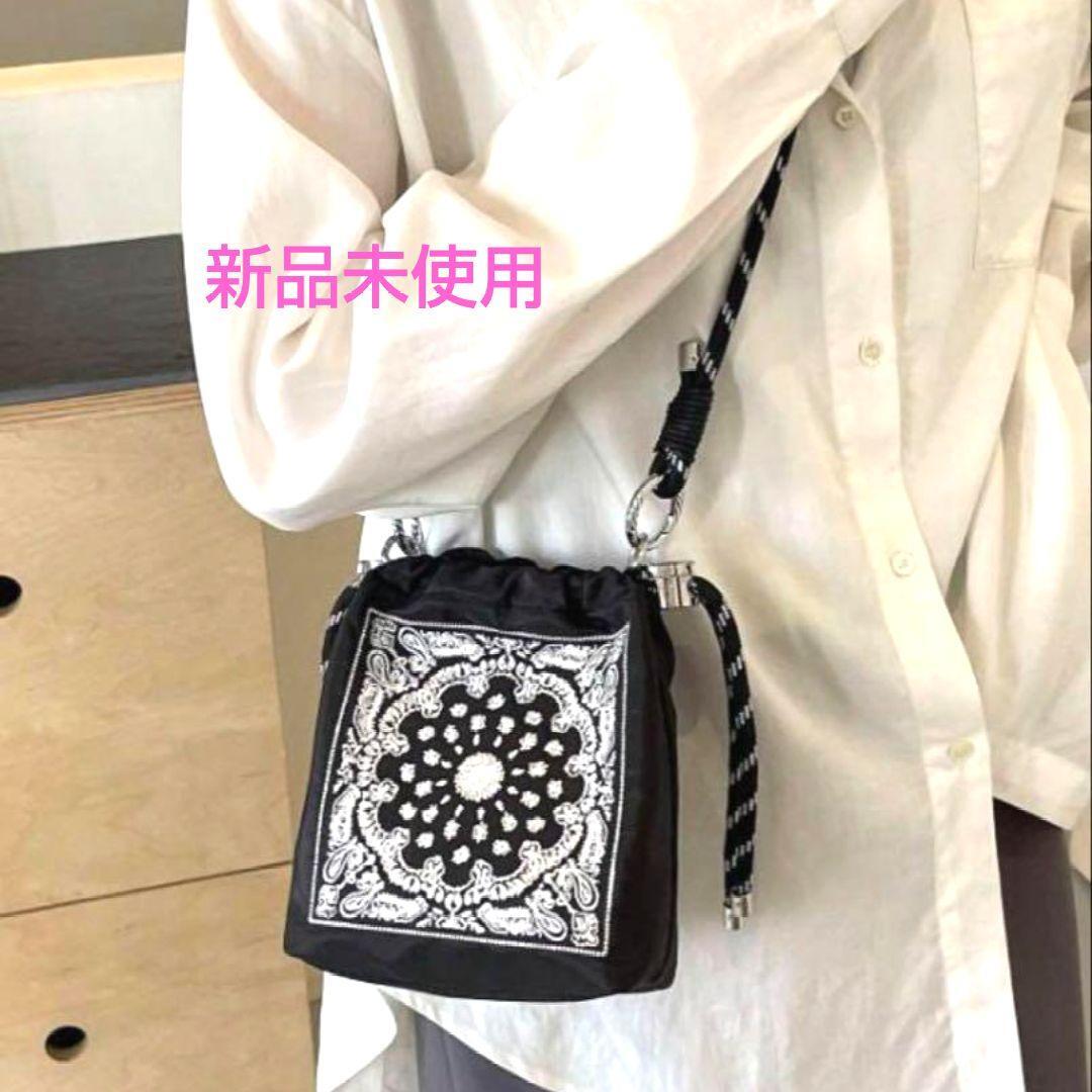 - 刺繍 ミニ ショルダーバッグ サコッシュ バンダナ柄 ブラック スマホショルダー