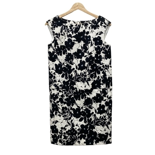 > ダーマコレクション DAMAcollection サイズ7AR S - 白×黒×ライトブルー レディース クルーネック/ノースリーブ/ひざ丈/花柄/刺繍 美品