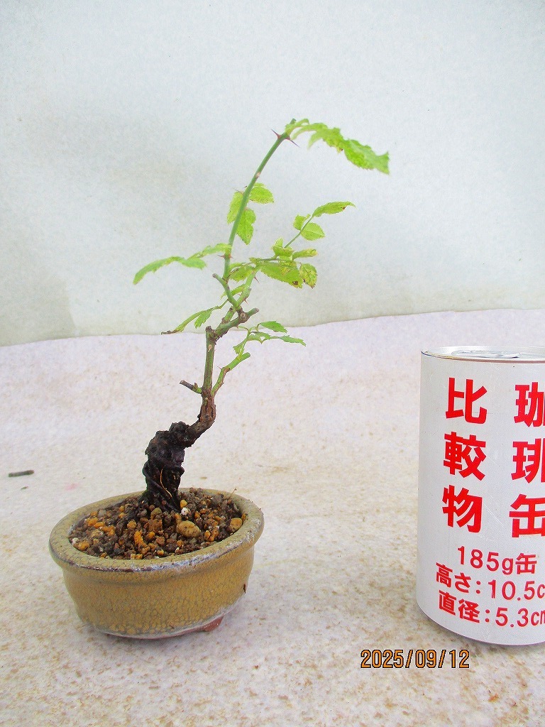 - [緑の市場] ミニ盆栽 野茨 花色不明(91104黄釉丸鉢)全高:19㎝【小型送料】*同梱包対応「まとめて取引」厳守*60サイズ送料明記
