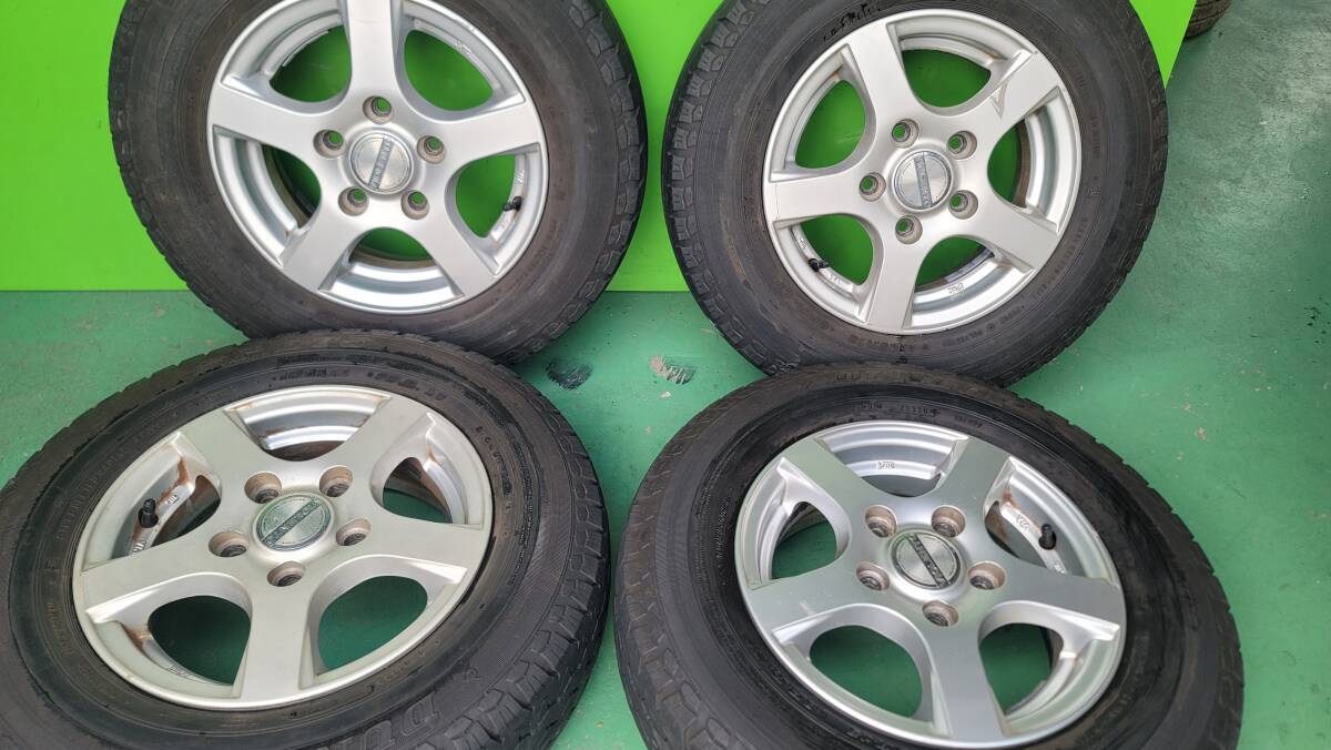 > ★6分山★165R13 8PR LT ホイル付き4本セット DUNLOP SP LT5 2020年製 社外美ホイール13×5J +45 114.3×6H №96897