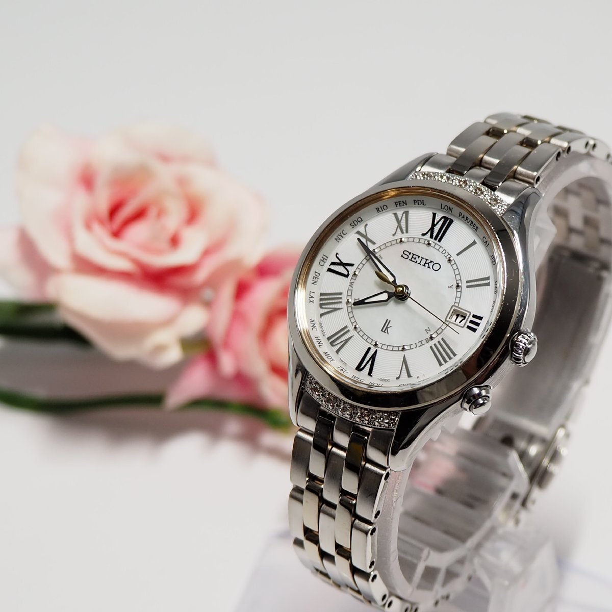 > セイコー SEIKO ルキア LK ダイヤベゼル 電波ソーラー シェル文字盤 デイト レディース 腕時計 H273 中古