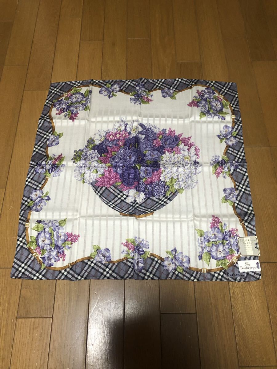 - ◆新品◆Burberrys バーバリー◆大判 ハンカチーフ スカーフ◆ノバチェック×花◆グレー