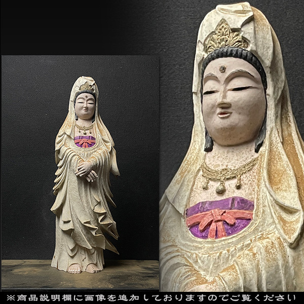 - 仏教美術 彩色木彫観音立像 細密彫刻 仏像 神社仏閣 時代 高さ約40cm