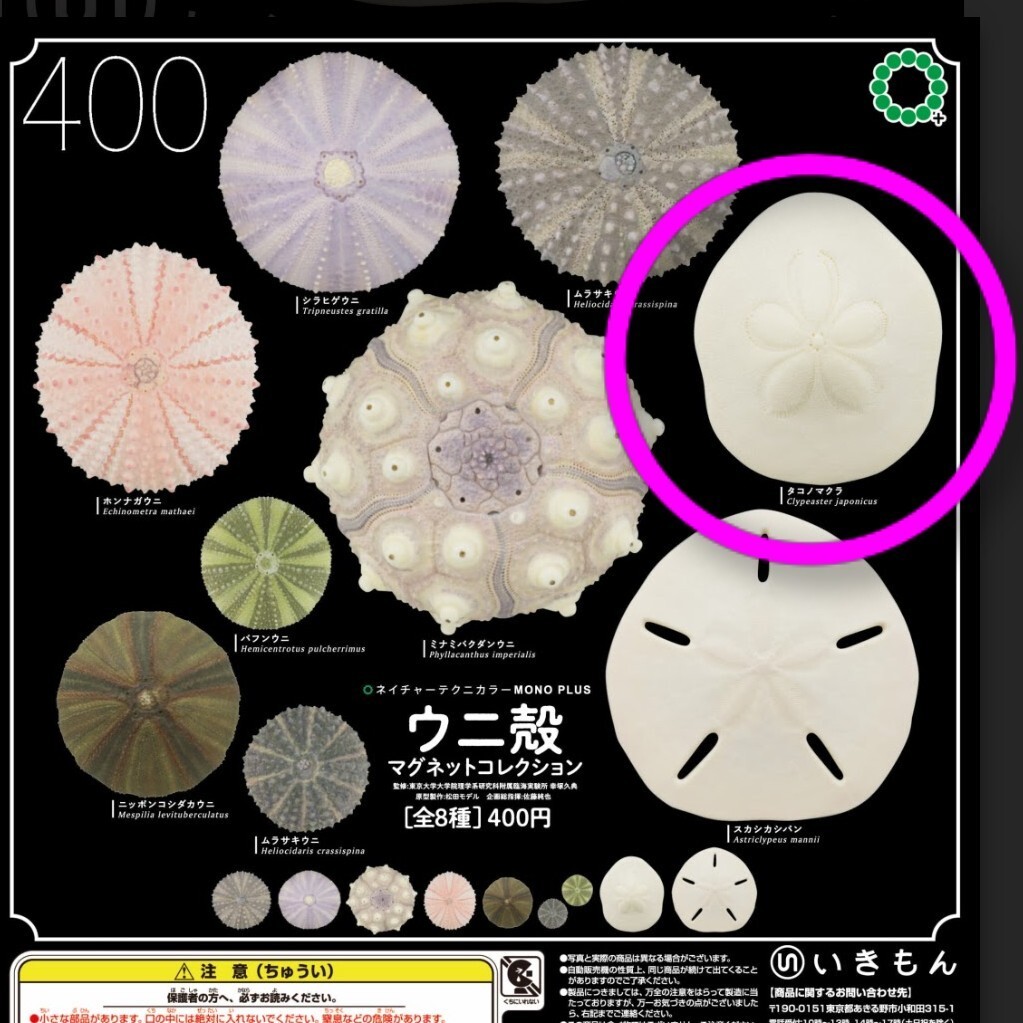 - タコノマクラ ウニ殻 マグネット コレクション カプセルトイ ガチャ ガチャガチャ フィギュア 新品 貝 貝殻 ウニ 貝がら 微小貝