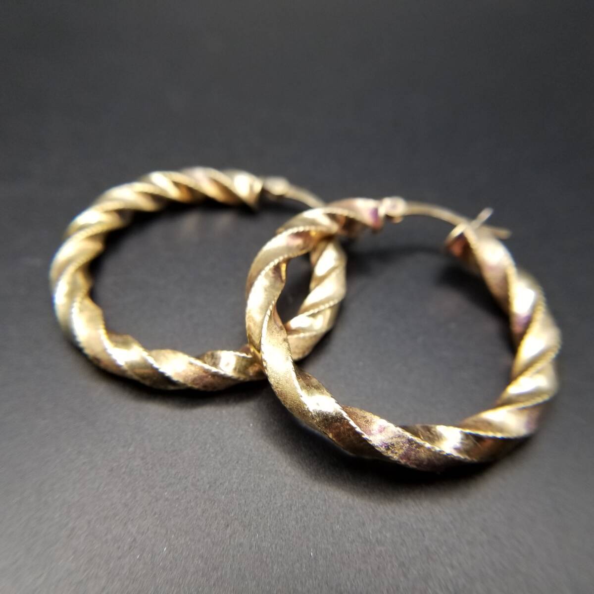 - ねじり ツイスト リング 925 シルバー ヴィンテージ フープ ピアス 銀 ゴールドトーン 大ぶり 存在感 Y24-N