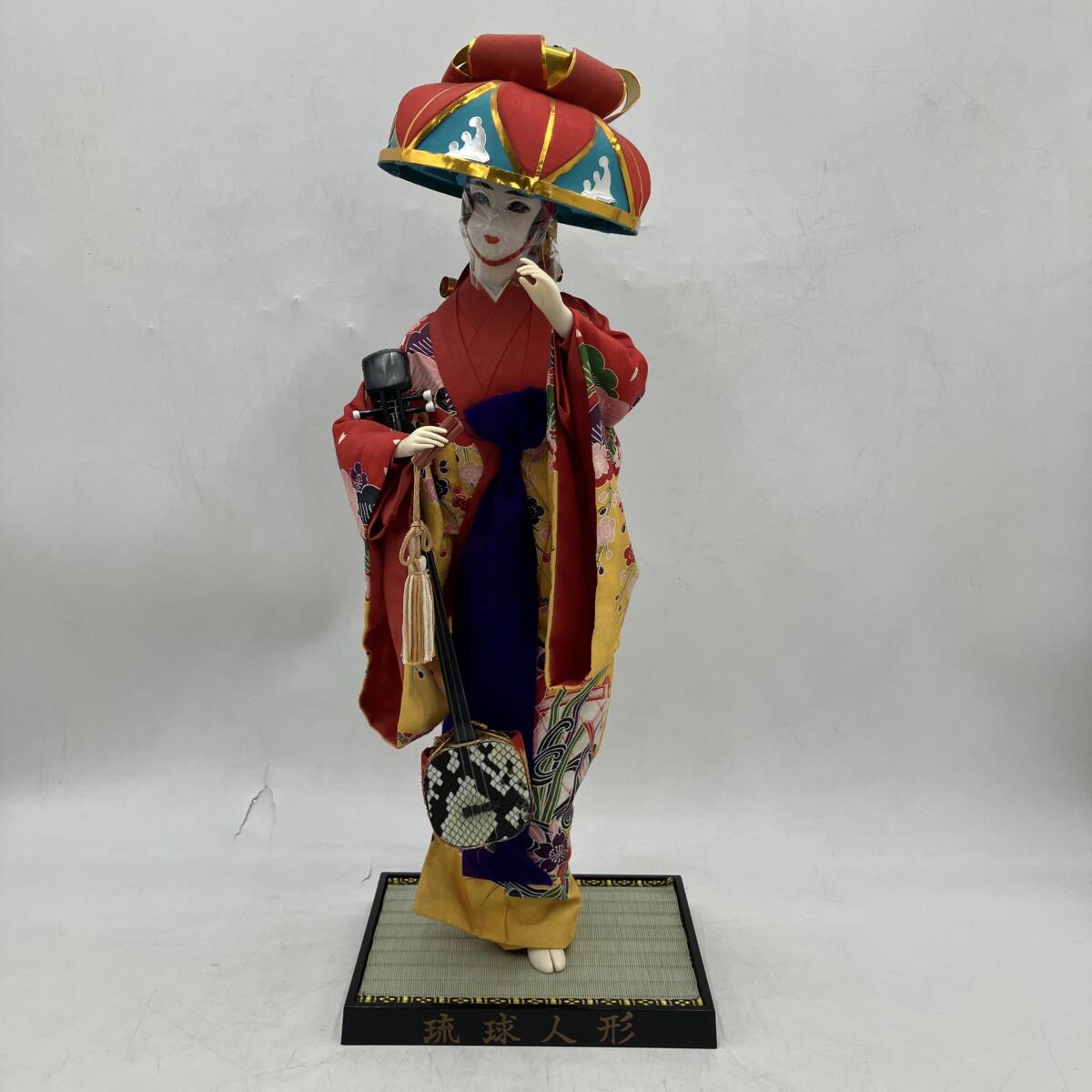 > 【中古美品】琉球人形 日本人形 蛇皮線 蛇味線 沖縄 人形 ドール 1点 置物 オブジェ インテリア 飾り 工芸品 アンティーク