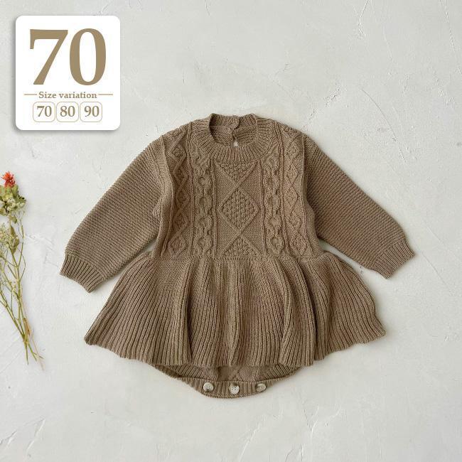 - 新品未使用 70cm ブラウン〔#BMニットロンパースワンピース〕子供 キッズ ベビー 女の子 長袖 チュニック ワンピース ケーブルニット 秋冬