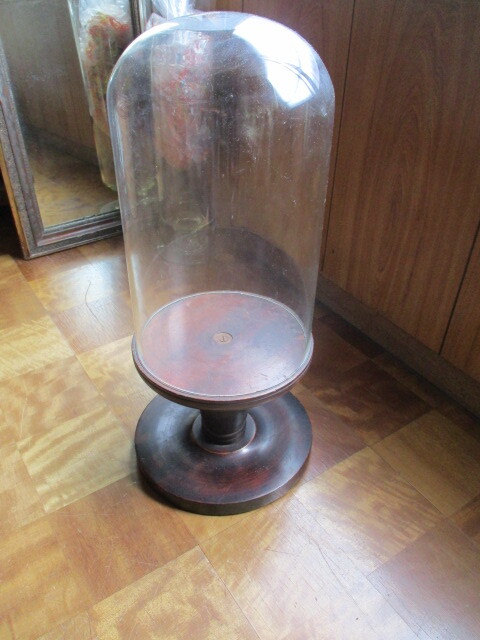 - 大きなガラスドーム展示木製台付インテリア古道具レトロビンテージアンティーク