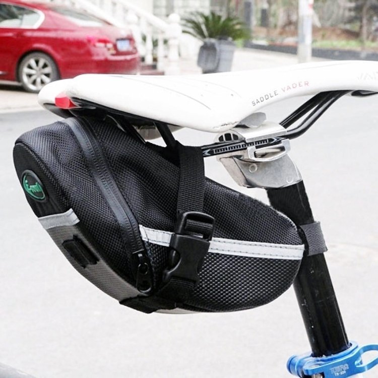 - 自転車用サドルバッグ ブラック 小型軽量 145g 耐久/対候性抜群 600Dナイロン製 反射テープ付 工具入れ 防水仕様 BSO1795
