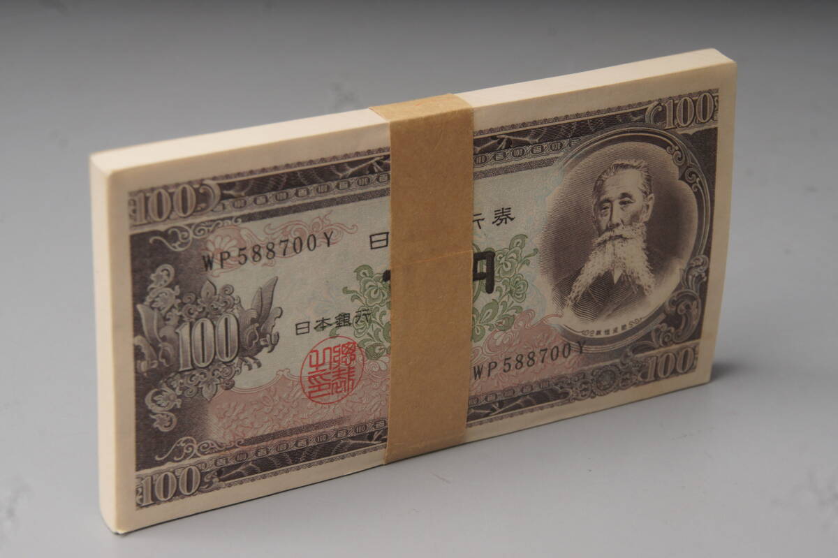 - 板垣退助 旧100円札 帯封100枚 WP588601Y~WP588700Y 連番 旧札 古銭 旧紙幣