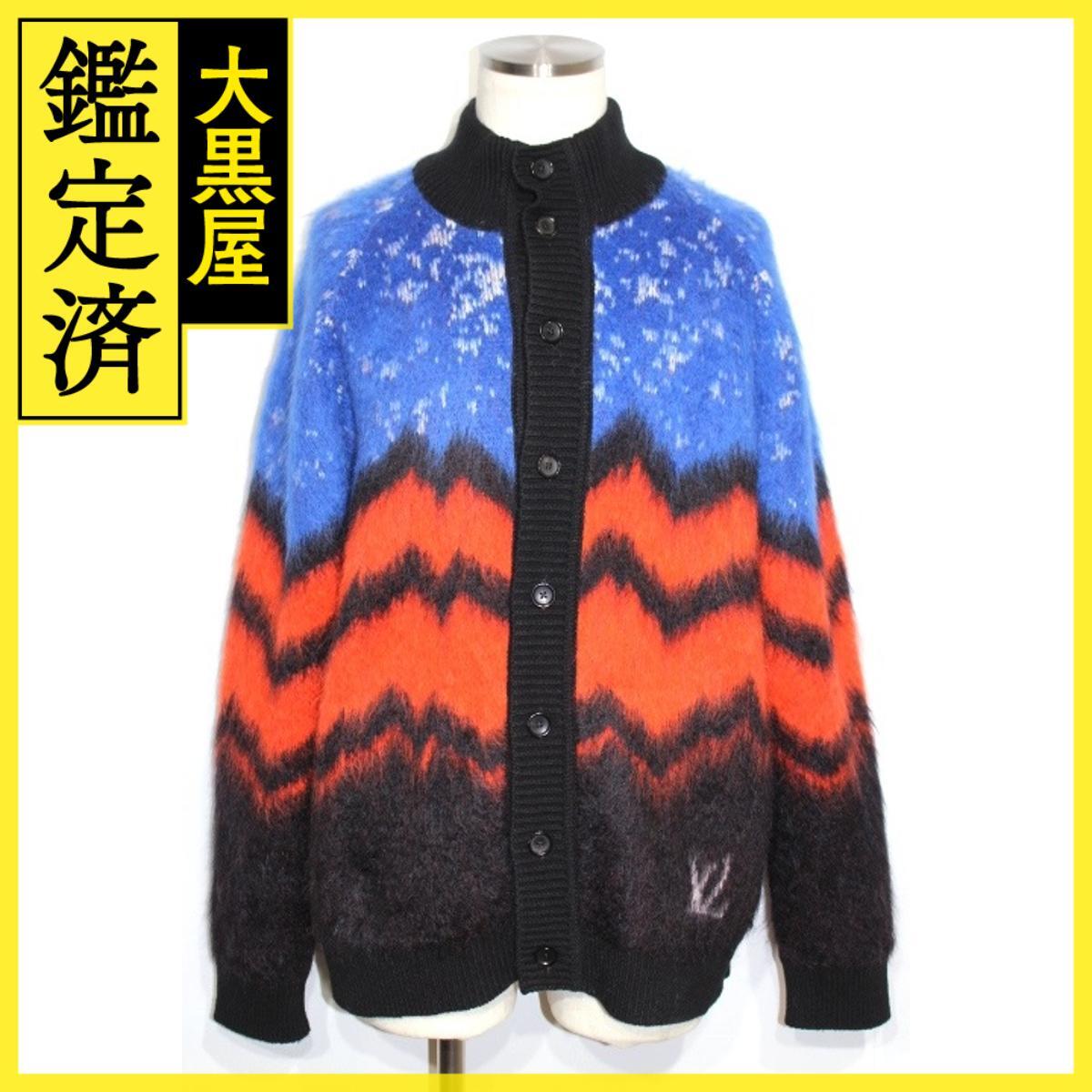 > LOUIS VUITTON ルイヴィトン チャンキー ウール カーディガン メンズXL ブルー/レッド/ブラック ウール