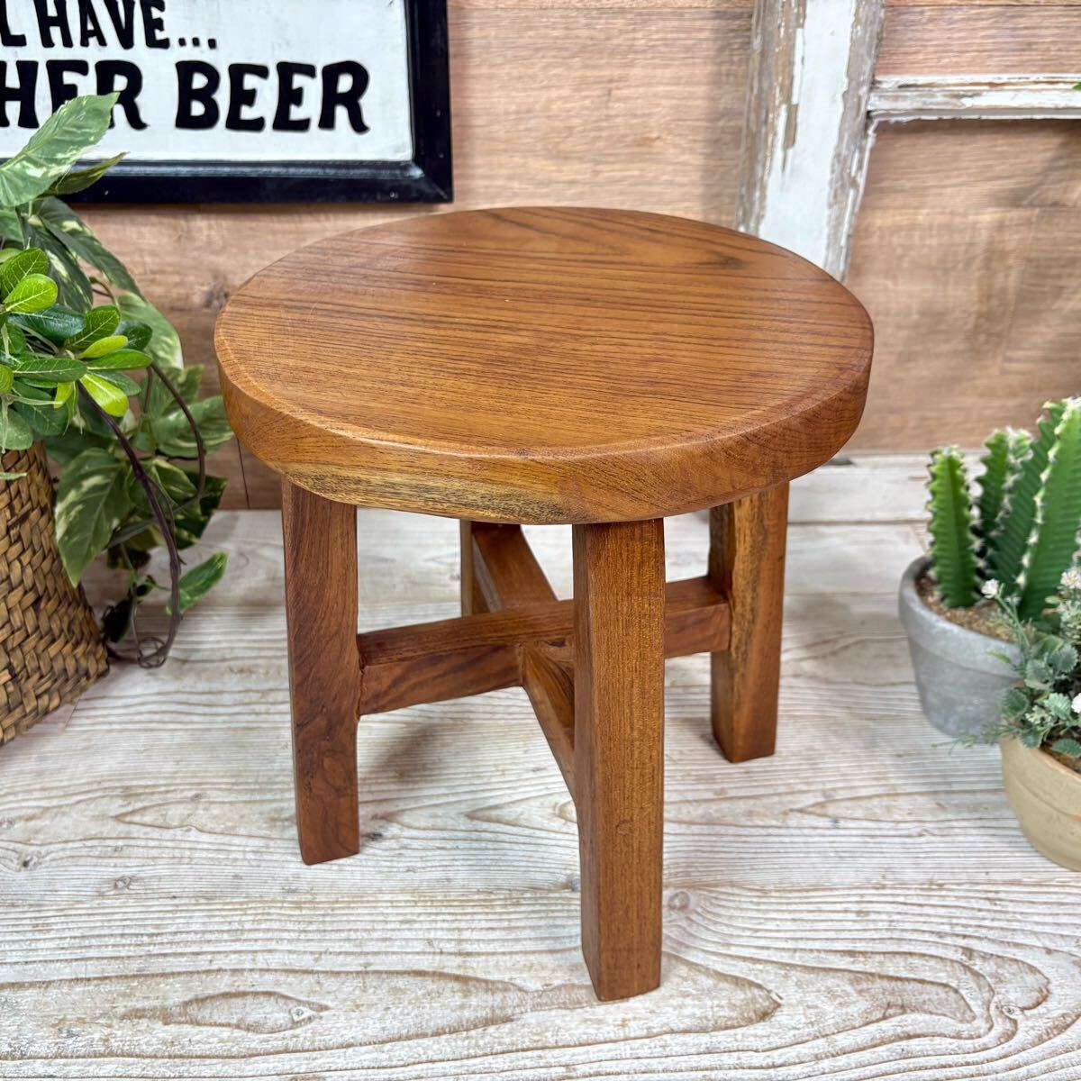 - 送料無料オールドチーク天然無垢材ウッド丸スツールS、椅子、チェア、ナチュラルウッド、天然木、木製花台、飾り台、木目、男前インテリア