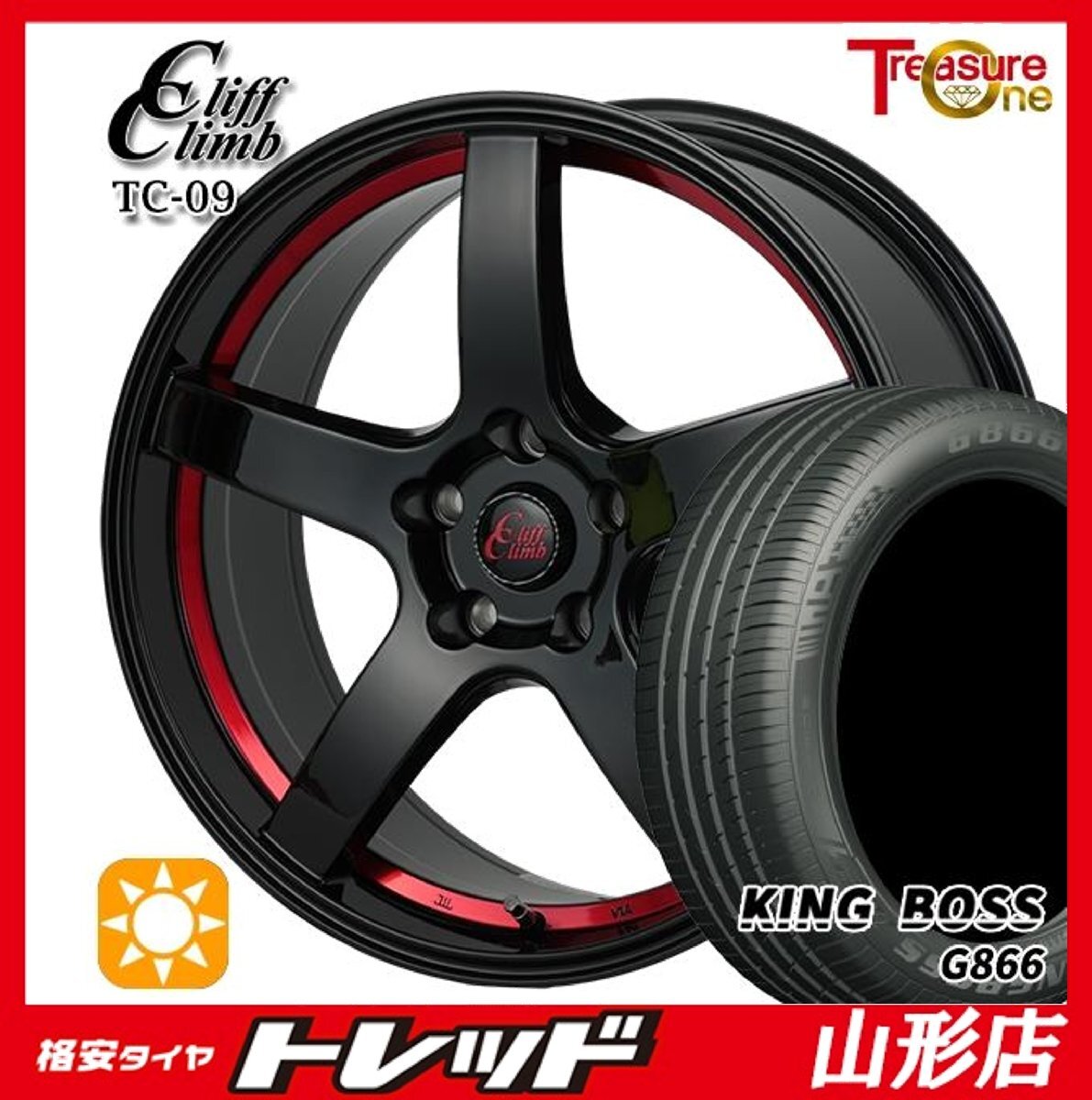 > 山形店 新品 夏タイヤホイール4本セット CliffClimb TC-09 17インチ 7.0j 5H100 +48 BKRED KINGBOSS G866 215/45R17 2025年 プリウス
