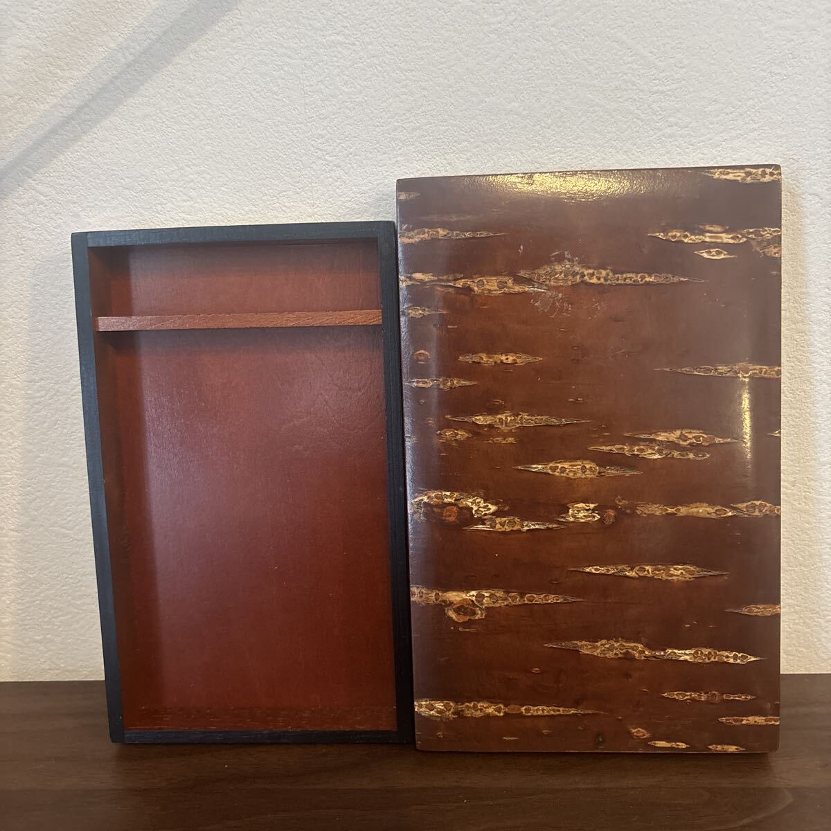 - 【桜皮細工 木製 竹文 硯箱】書道具 文箱 文具箱/お道具箱/ 小物入れ