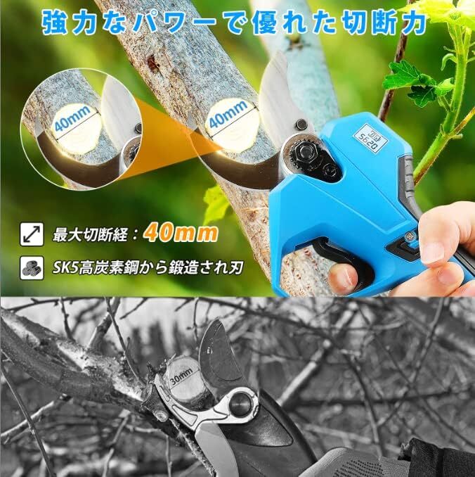 - 機能性重視 充電式剪定ばさみ 電動ハサミ 切断直径40mm ブラシレスモーター採
