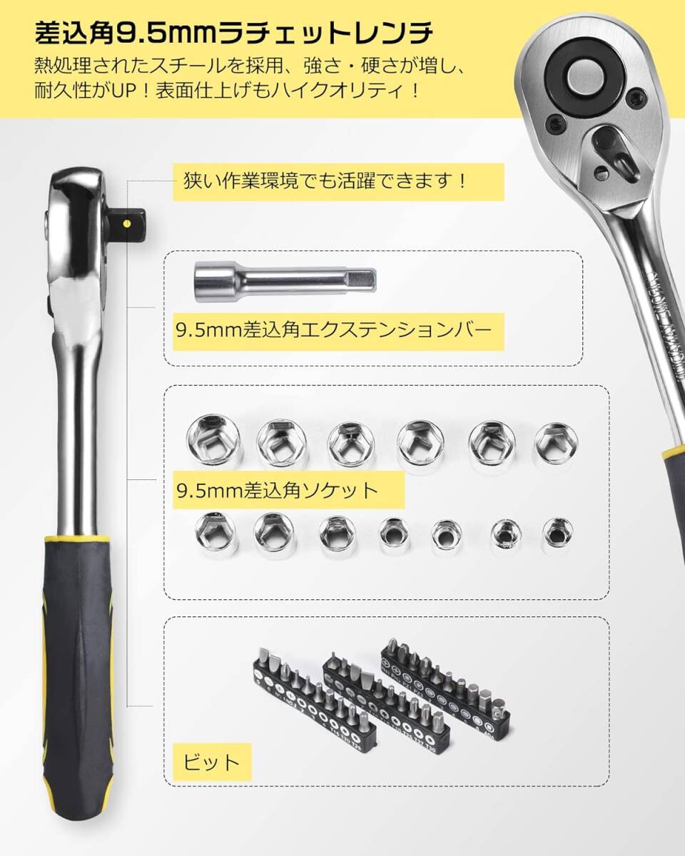 - おすすめ 家庭用・車・自転車整備対応 工具セット108点 家具組み立て 家庭修理
